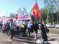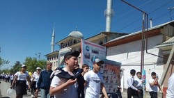 Кара-Сууда терроризмге, экстремизмге каршы жөө жүрүшкө чыккандар борбордук мечиттин алдынан өтүштү